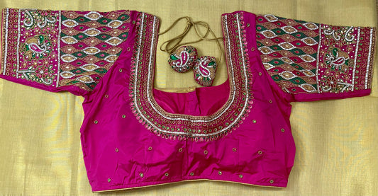 Aari Maggam work blouse Pink and Green | Fits 38"-44"|PrincessCut PaddedRegular price $145.00 USDRegular priceUnit price / per-