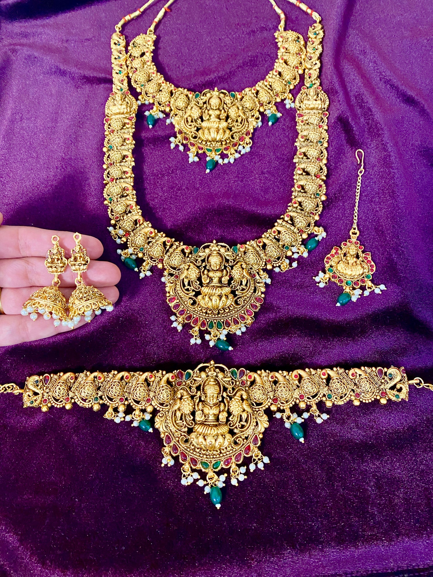Laxmi Peacock AD Guttapusalu Necklace| 2 Earring setsRegular price $180.00 USDRegular priceUnit price / per-