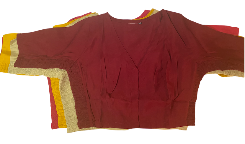 V-Neck Cotton silk stretchable sides smocked Blouse|Bust 34"-44"| Saree Mix & match Readymade Blouse | PrincessCut No-Pad No-lining