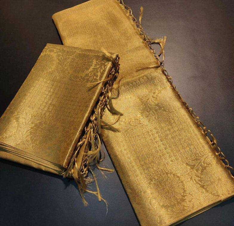 Golden Tissue Silk Saree| Kanchi Border Copper Tissue Silk Gold Saree |Running Blouse